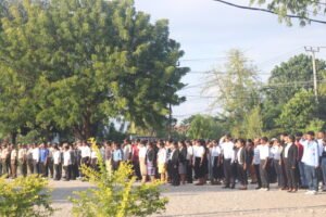 Entretantu serimonia hasa’e bandeira nasional, semana dahuluk fulan Augustu 2025 ne’e hala’o iha resintu administrasun munisipiu Covalima ne’ebé partisipa husi funsionariu kargu xefia sira, ajenti Administrasaun, funsionariu Kazuais sira no mos Delegasaun territorial, inklui estudante finalista sira husi Universidade Nasional Timor Lorosa’e (UNTL) sira ne’ebé hala’o estajiu iha Munisipiu Covalima